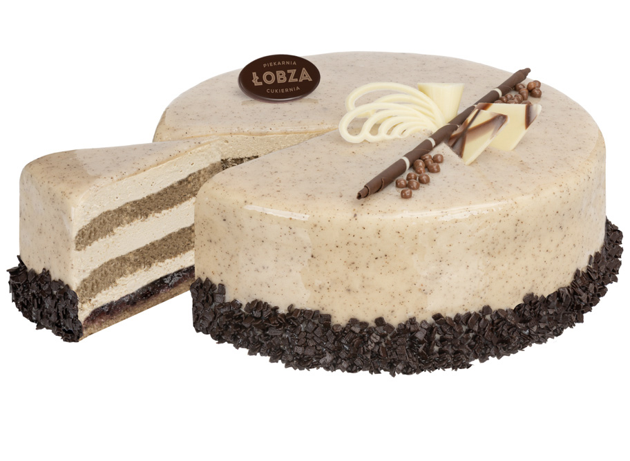 Jasny biszkopt, nasączony kawą, wilgotny i aromatyczny, przełożony kremem kawowym o delikatnej konsystencji. U podstawy tortu znajduje się cienka warstwa owocowej konfitury (p, która przełamuje smak kawy subtelną kwasowością.